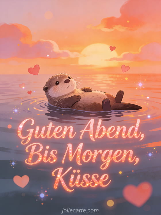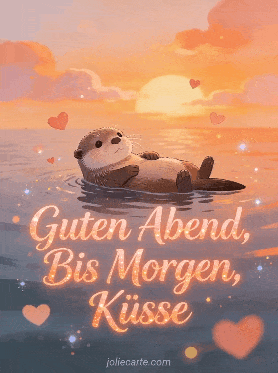 Schicke einen süßen und zärtlichen Abendgruß mit dieser kostenlosen Karte. Entdecke auch eine Karte bis morgen guten Abend oder eine Karte gute nacht bis morgen küsschen.