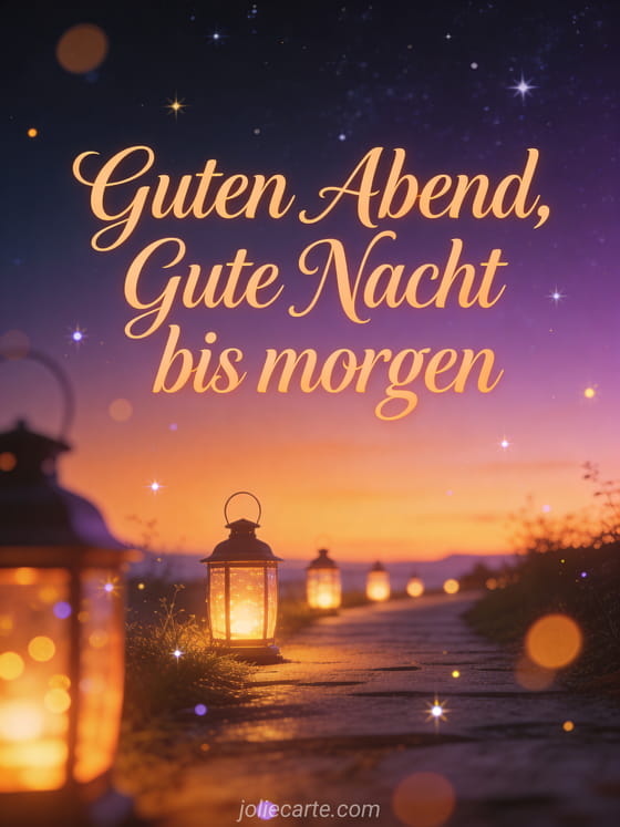 Schicke einen warmen Guten-Abend-und-Gute-Nacht-Gruß mit dieser wunderschönen Karte. Entdecke auch eine Bild-Gute-Nacht-bis-morgen-Karte oder eine Bis-morgen-Gute-Nacht-Karte.