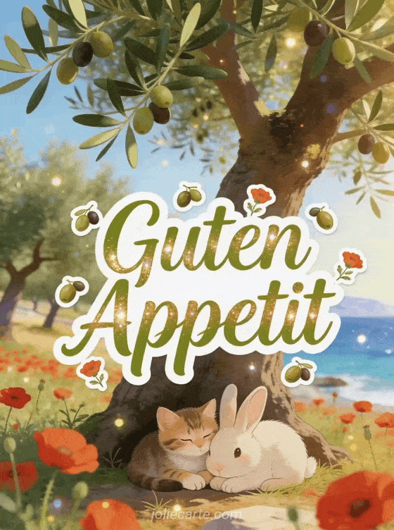 Wünsche jemandem eine köstliche Mahlzeit mit dieser charmanten animierten Grußkarte. Entdecke auch fotos guten appetit oder ein gif guten appetit für deinen Gruß.