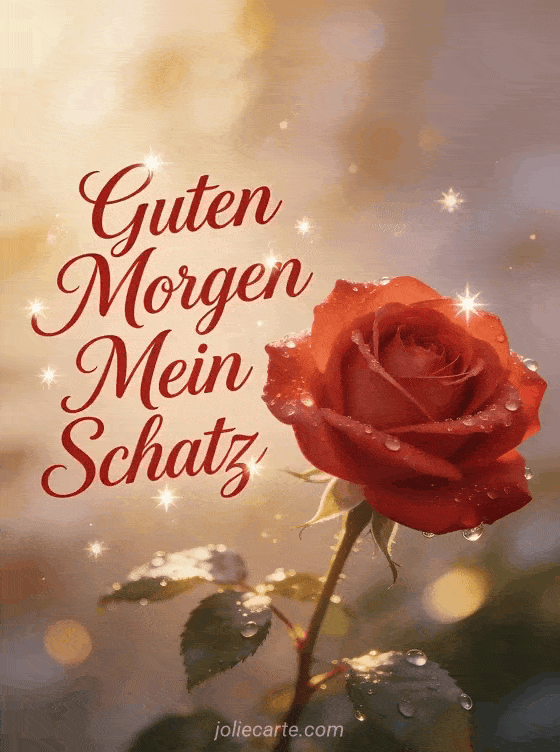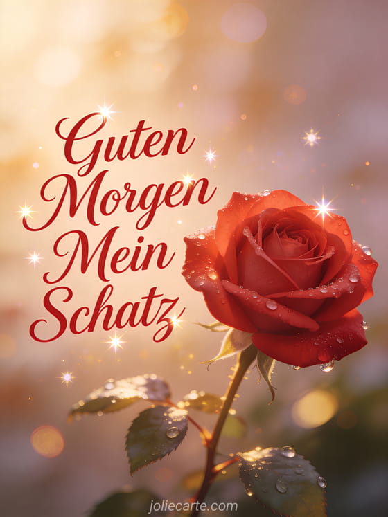 Guten Morgen an seinen Schatz einen tief romantischen Morgengruß für den Schatz mit einer roten Rose und Morgentau