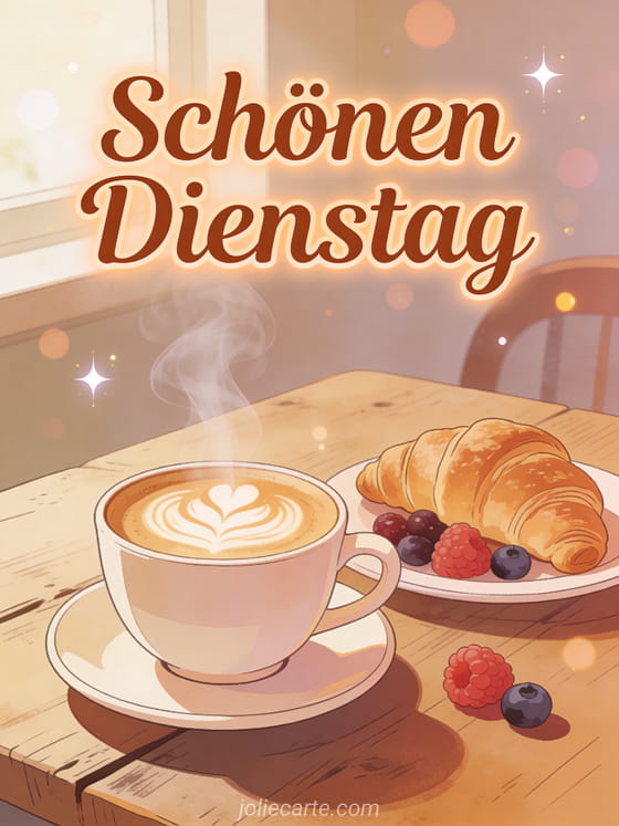 Schicke diese gemütliche Guten-Morgen-Dienstag-Kaffee-Karte für einen wunderschönen Tagesbeginn. Entdecke auch eine Karte schönes Dienstagsbild oder eine Karte lustiger schöner Dienstag.