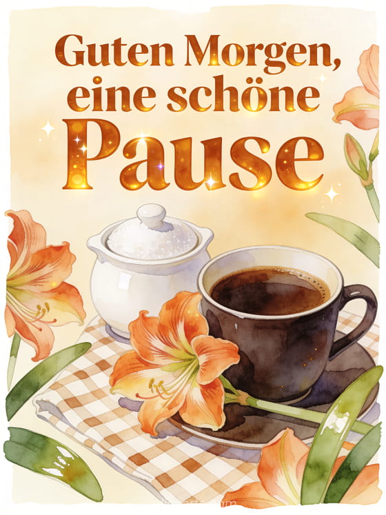 Wünsche eine schöne Pause mit einer weißen Zuckerdose, einer dunklen Kaffeetasse, kräftigen Amaryllisblüten und einer karierten Tischdecke in gemütlichem Aquarelllicht. Du kannst auch Guten Morgen mein Herz Kaffee, Guten Morgen Kaffee Kaffee oder Guten-Morgen-Kaffee-GIFs senden.