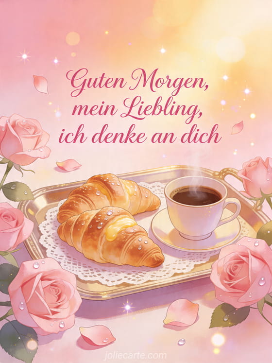 Teile eine romantische Guten-Morgen-Karte für mein Liebling, um den Tag mit Wärme und liebevollen Gedanken zu beginnen. Entdecke auch ich träume von dir ich denke an dich, schönen tag mein liebling ich denke an dich oder Foto ich liebe dich ich denke an dich.