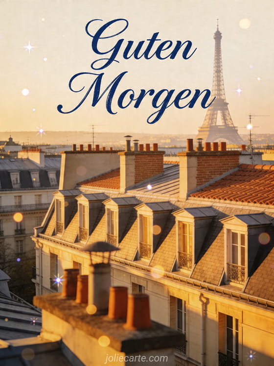 Verschicke eine elegante Guten-Morgen-Karte mit Pariser Dächern zur goldenen Stunde für einen stilvollen Montag. Entdecke auch schönen montag schöne woche lustig, guten morgen schönen montag und bild schönen montag.