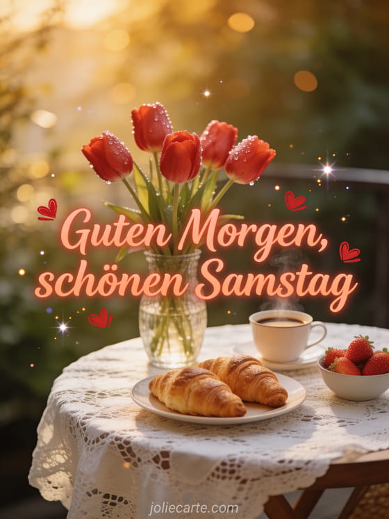 guten Morgen schönen Samstag Küsse ein zärtlicher Samstagsmorgengruß mit roten Tulpen
