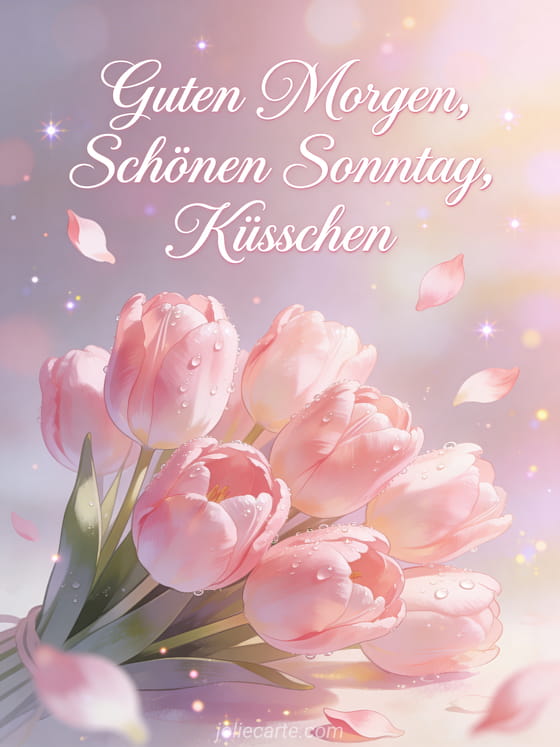 Guten Morgen schönen Sonntag Küsschen ein zärtlicher Sonntagmorgen mit rosa Tulpen und Küsschen