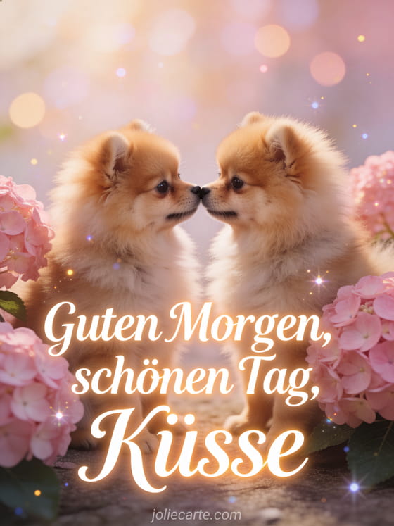 Teile dieses schöne Guten-Morgen-Bild mit Küssen. Entdecke auch schönen Tag für dich oder schönen Tag ich denke an dich Bild.