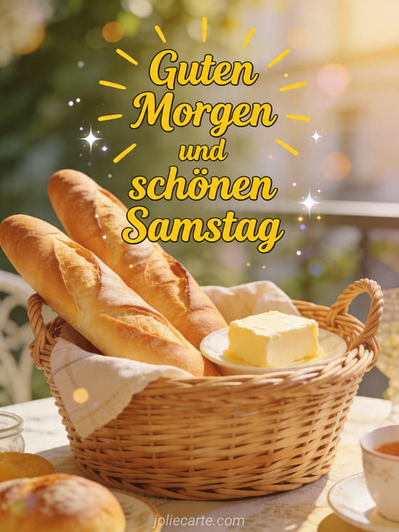 Guten Morgen und schönen Samstag ein charmanter Samstagsgruß mit frischer Frühstücksstimmung
