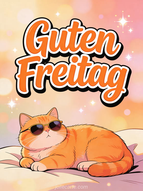 Teile eine urkomische Guten-Freitag-Karte mit Humor mit einer molligen Katze in einer kleinen Sonnenbrille. Die perfekte Art, das Wochenende zu begrüßen. Entdecke auch eine lustige Freitag Gif-Karte oder eine Karte Freitag schönen Tag.