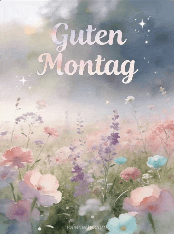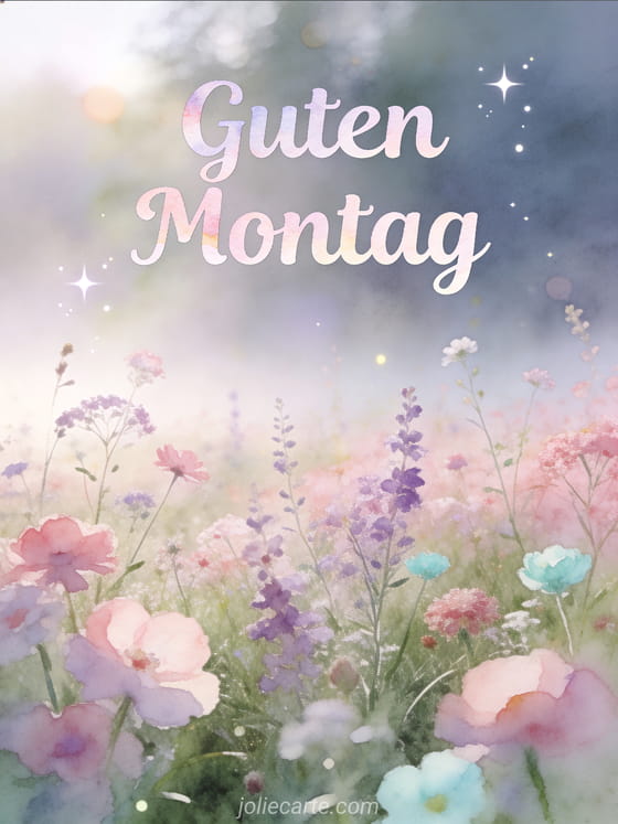 Teile ein schönes Guter-Montag-Bild mit einer traumhaften Wiese und Wildblumen. Ein friedlicher Gruß, um die Woche mit Gelassenheit zu beginnen. Entdecke auch eine Karte Guter Montag Humor Küsschen oder eine Karte ausgezeichneter Montag und gute Woche.