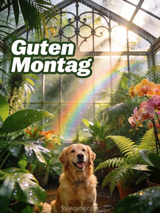 Starte die Woche mit Freude und sende diese schöne Montag-Karte mit einem glücklichen Hund. Entdecke auch eine guter Montag lustig Karte oder eine Karte Zärtlichkeit guter Montag Küsse.