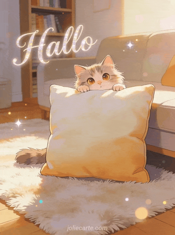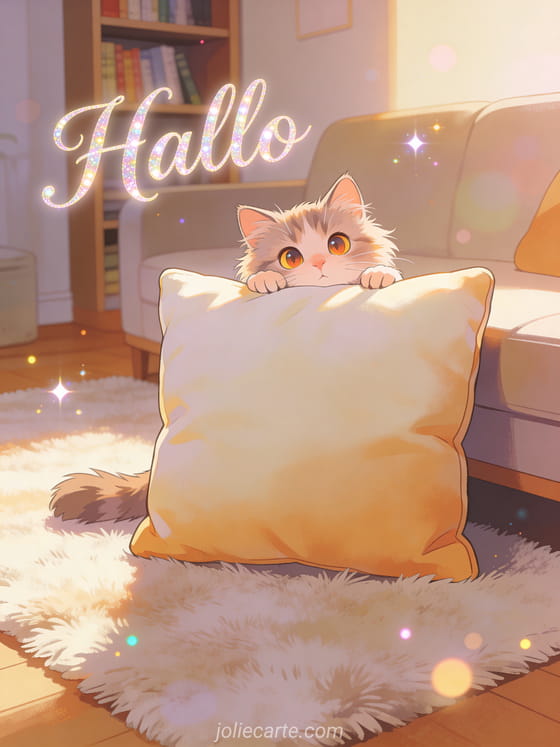 Hallo ein süßes und zärtliches Hallo von einer entzückenden flauschigen Katze