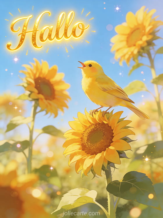 Schicke einen fröhlichen und leuchtenden Gruß mit dieser kostenlosen Karte. Entdecke auch eine Karte hallo ich denke an dich oder eine Karte hallo Eulen.