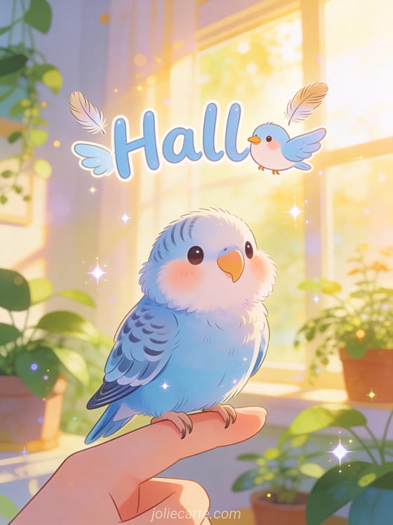 Hallo ein sonniges Hallo von einem kleinen blauen Wellensittich