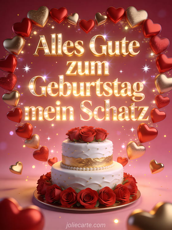 Feiere die Liebe mit dieser edlen Geburtstagskarte voller Herzen, Rosen und festlicher Stimmung. Entdecke auch Geburtstagsnachricht für meinen Liebsten, geburtstagskarte schatz und alles gute zum geburtstag mein schatz karte.