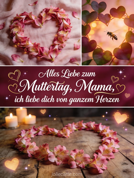 Teile diese romantische Muttertagskarte und sage deiner Mama, wie sehr du sie liebst. Entdecke auch Muttertagskarte einfach und schnell, Muttertag Wünsche und Kartenvorlage Muttertag.