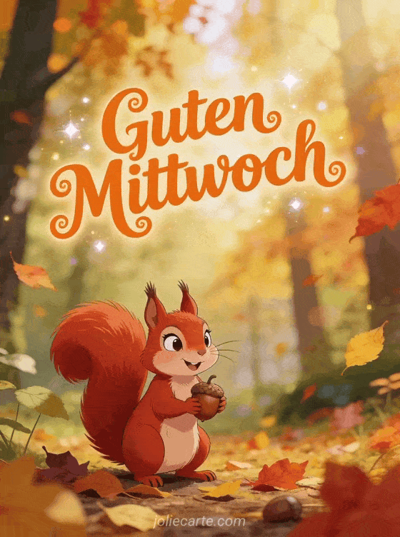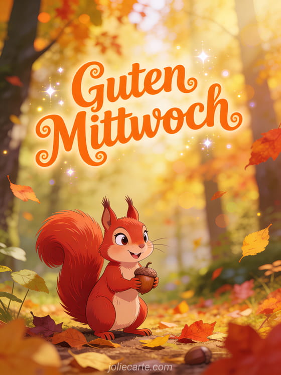 Humor guten morgen guten mittwoch ein schelmisches Eichhörnchen im Herbstlaub für einen lustigen Mittwochmorgen