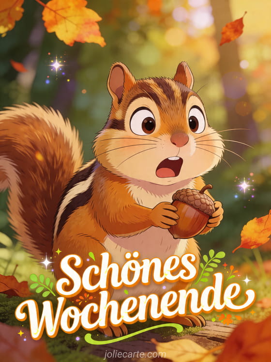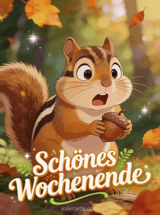 Teilen Sie diese lustige Karte Schönes Wochenende mit einem dramatischen Eichhörnchen, einer Eichel und einem herrlich schockierten Blick. Entdecken Sie auch sonniges schönes wochenende humor, humor schönes wochenende gif und schönes wochenende mit humor wünschen.