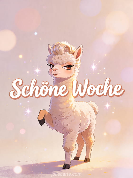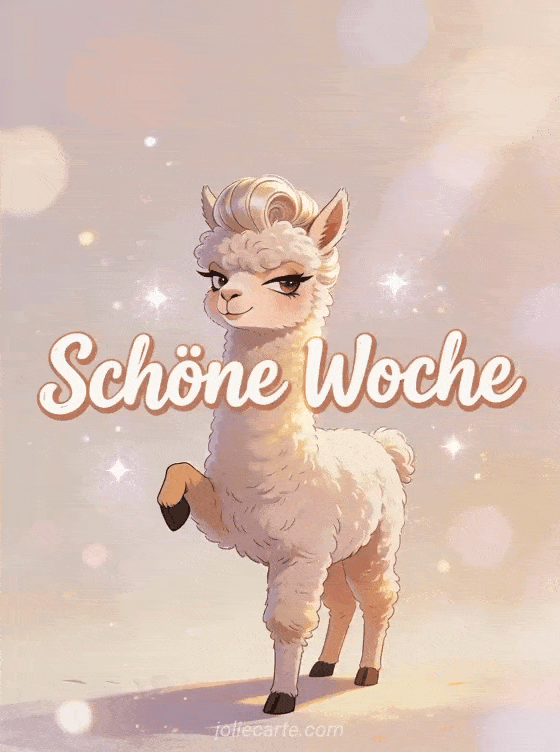 Teilen Sie diese lustige Karte Schöne Woche mit einem selbstbewussten Alpaka, flauschigem Fell und einer fabelhaften frechen Ausstrahlung. Entdecken Sie auch animierte schöne woche gifs, schöne woche gifs humor und glitzernde schöne woche gif.