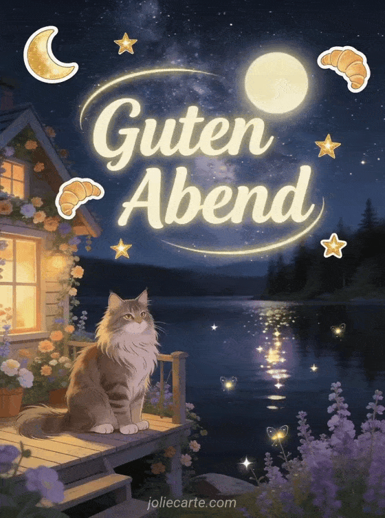 Katze guten abend · Guten abend mit Tieren · Guten Abend funkelnder Gif · Schöne karte guten abend · Kleiner Guten-Abend-Gruß