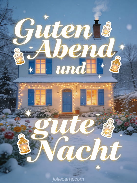 Beende den Tag herzlich mit dieser schönen Karte guten Abend und gute Nacht. Entdecke auch eine Karte Nachricht um eine gute Nacht zu wünschen oder eine Gute-Nacht-Karte Küsse.