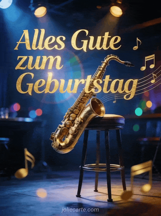 Alles Gute zum Geburtstag ein goldenes Saxophon in einem eleganten Jazzclub