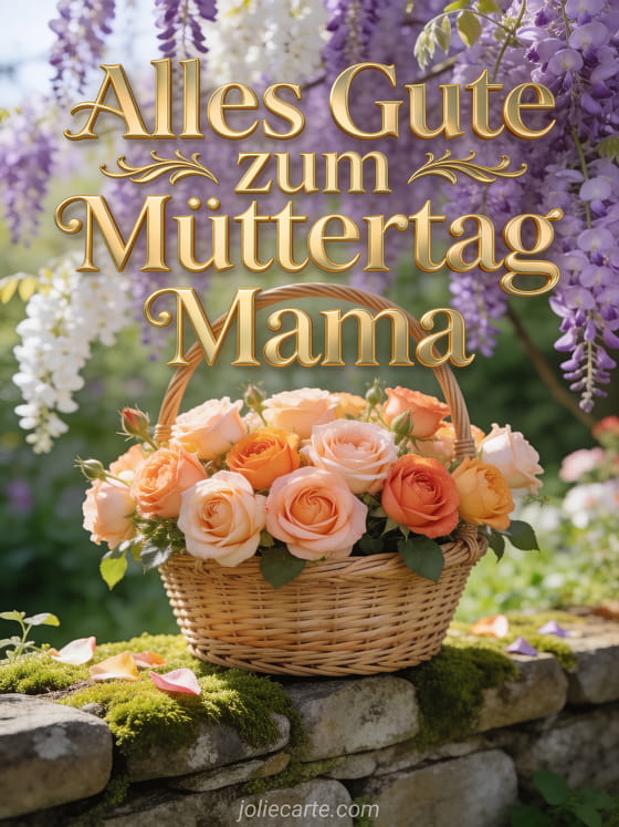 Feiere den Muttertag mit einer ländlich-eleganten Blumenszene. Entdecke auch Muttertagskarte einfach, Gedanke Zitat Muttertag und schönen Muttertag Herz.