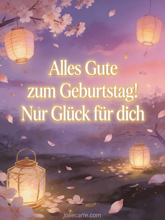 Teile einen kurzen Geburtstagstext in einer magischen Dämmerung mit Laternen und warmem Licht. Entdecke auch kurze Geburtstagsworte, Geburtstagswort für eine Freundin und nette Geburtstagsworte.