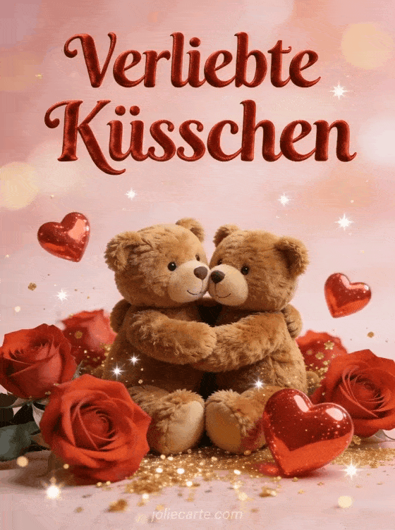 Senden Sie Ihre süßesten verliebten Küsschen mit dieser romantischen Karte voller Herzen und Zärtlichkeit. Entdecken Sie auch eine Karte gute Nacht mein Schatz oder eine Karte romantische Liebesküsse.