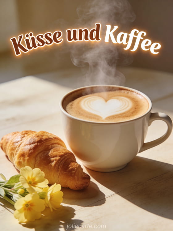 Teile süße Küsse und Kaffee mit dieser charmanten Morgenkarte. Entdecke auch eine riesige-Küsse-senden-Karte oder eine Bilder-kleine-Küsse-Karte.