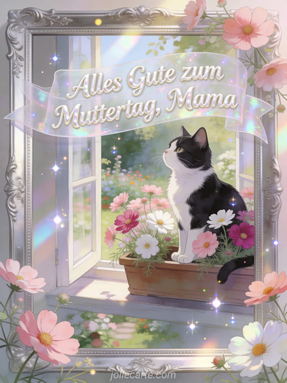 Überrasche deine Mama mit dieser zarten Muttertagskarte in einer friedlichen Gartenszene. Entdecke auch Glückwunschkarte Muttertag, Muttertagswunsch für meine Tochter und Gedanke Muttertag.