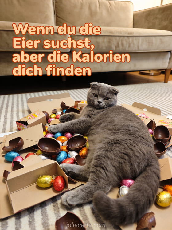 Teile diese witzige Frohe Ostern Humor Karte und bring alle zum Lachen. Entdecke auch eine Katze Ostern lustig Karte oder eine Osterei lustig Karte.