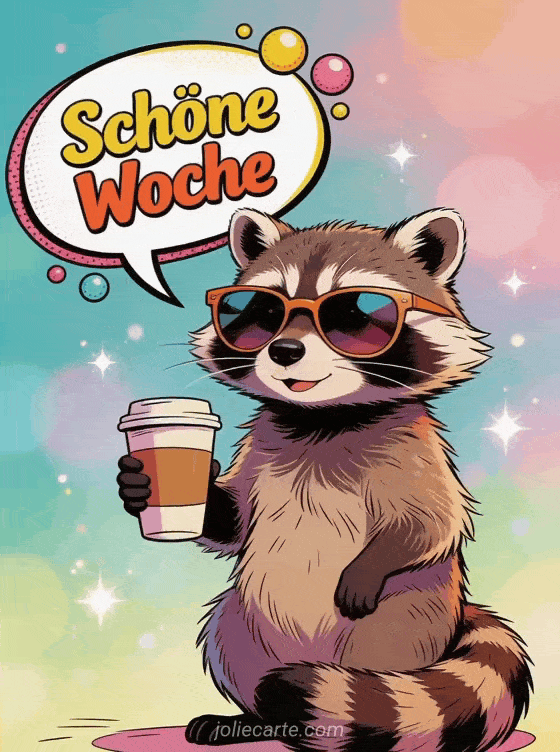 Senden Sie einen lustigen Wunsch für eine schöne Woche und zaubern Sie ein Lächeln auf die Gesichter Ihrer Liebsten. Entdecken Sie auch eine Karte für guten Morgen und schöne Woche, für schönen Tag und schöne Woche oder für schöne Woche mit Küssen.