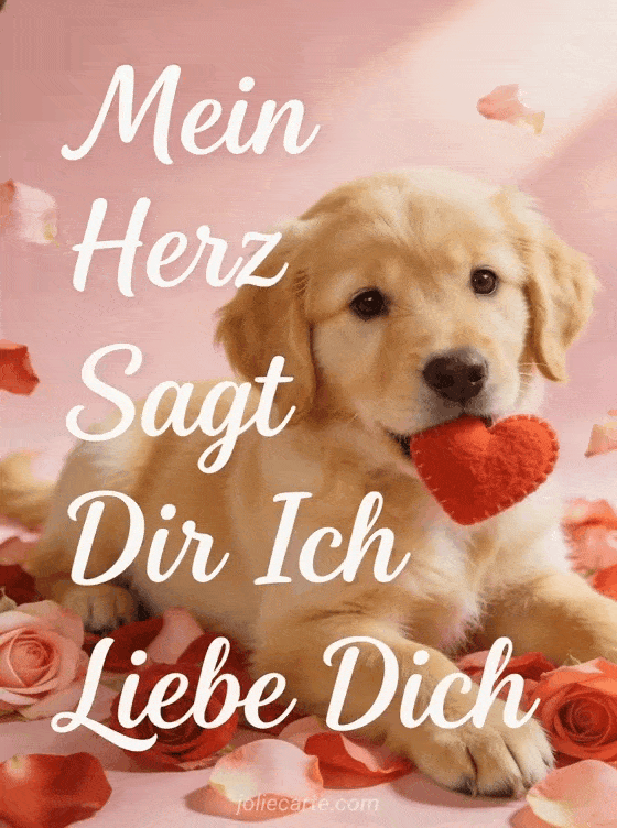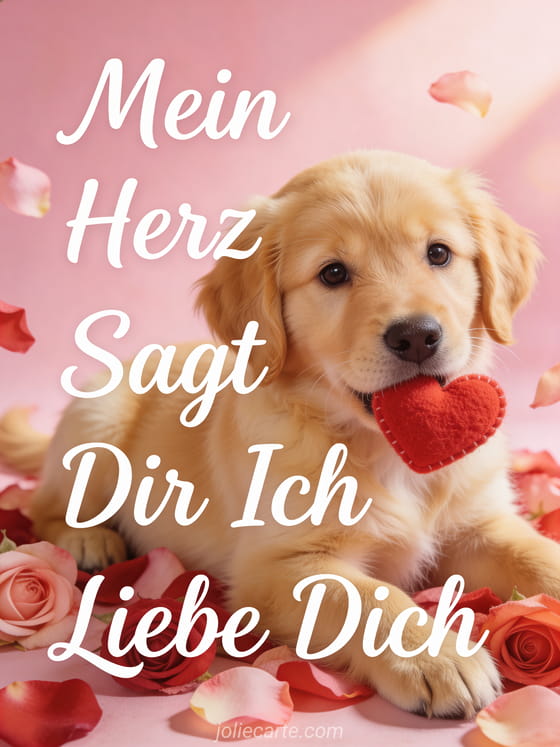 Sende diese bezaubernde Illustrationskarte mit einem Golden-Retriever-Welpen, um deine Liebe auszudrücken. Entdecke auch ein GIF verliebtes Pärchen ich liebe dich oder ein GIF ich liebe dich.