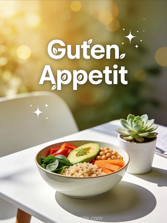 Verschicke einen köstlichen Guten-Appetit-Gruß mit dieser frischen gesunden Buddha-Bowl-Karte. Entdecke auch eine Guten-Appetit-Nachrichten-Karte oder eine Guten-Appetit-Karte.