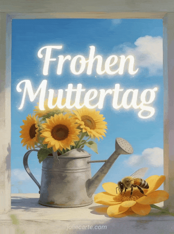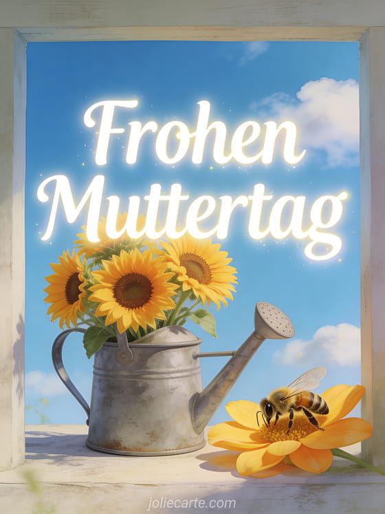Verschönere Mamas Tag mit dieser sonnigen Karte mit leuchtenden Sonnenblumen und einer verspielten Biene. Entdecke auch gezeichnete Muttertagskarte oder Muttertag Karten kostenlos.