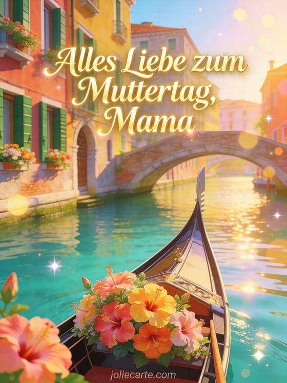 Sende dieses romantische Muttertag-Bild und feiere deine Mama mit venezianischem Flair. Entdecke auch freudigen Muttertag, Wunsch Muttertag und Text Muttertag für meine Tochter.