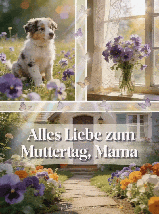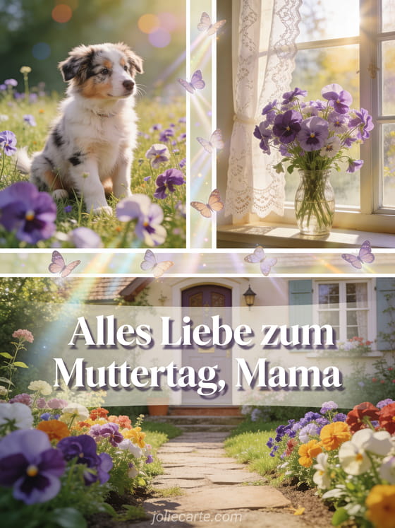 Sende eine zarte Muttertagskarte mit realistischer Collage und Blumenzauber. Entdecke auch alles Gute zum Muttertag Mama Gedicht Muttertag, Einladungskarte Muttertag und Muttertag Zitat.