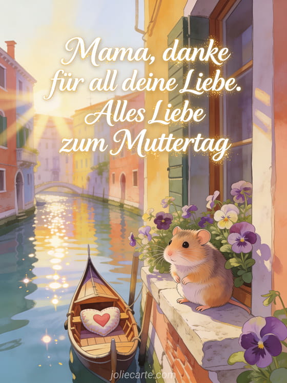 Verschicke dieses kurze Muttertag-Gedicht und sage deiner Mama Danke für ihre Liebe. Entdecke auch Worte zum Muttertag, Pflanzkarte Muttertag und fröhlicher Muttertag Nachricht.