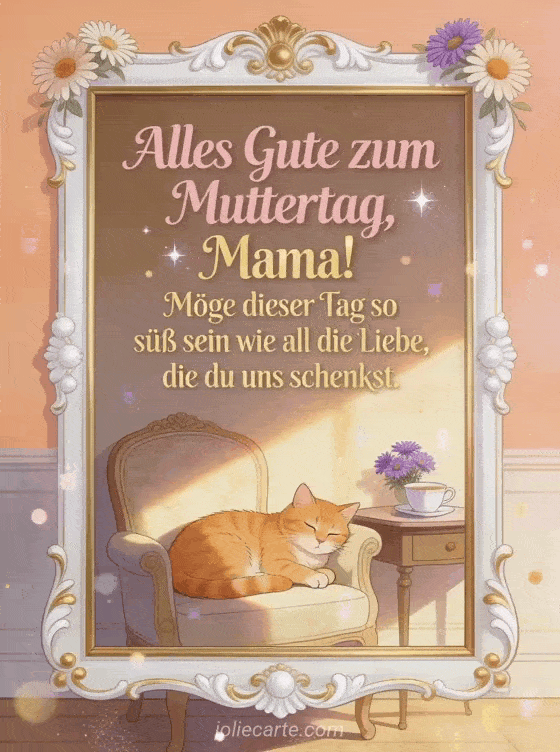 Überrasche deine Mama mit dieser gemütlichen Muttertagskarte und einem Wunsch von Herzen. Entdecke auch Kartenvorlage Muttertag, frohen Muttertag alles Liebe Mama GIF und gute Feste der Mutter.