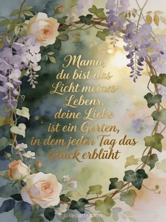 Sagen Sie Ihrer Mama, dass sie das Licht Ihres Lebens ist, mit dieser herzlichen Muttertagskarte. Ihre Liebe ist ein Garten, in dem jeden Tag das Glück erblüht. Entdecken Sie auch eine animierte Muttertagskarte.