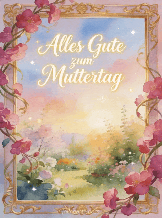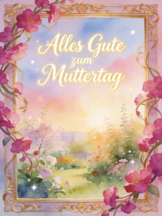 Wähle eine elegante Muttertagskarte mit elfenbeinfarbener Kalligrafie, leuchtenden Fuchsia-Blüten und einem dekorativen Goldrahmen. Entdecke auch eine Muttertagskarte mit Herz, eine Karte alles Gute zum Muttertag oder eine Karte alles Gute zum Muttertag liebe Mama.