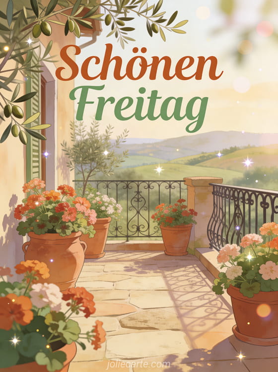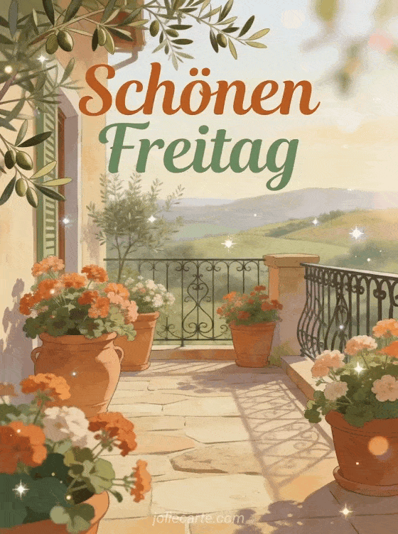 Nachricht schönen freitag eine fröhliche Freitagsnachricht mit mediterraner Terrasse