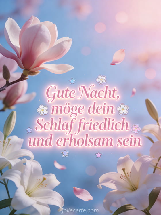Sende eine warmherzige Gute-Nacht-Nachricht an jemand Besonderes mit dieser schönen kostenlosen Karte. Entdecke auch eine Gute-Nacht-Karte Küsse oder eine schöne Nachricht Gute Nacht sagen Karte.