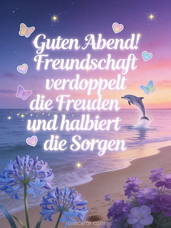 Sende eine Nachricht um einem Freund guten Abend zu wünschen. Entdecke auch eine nachricht guten abend, einen guten abend freundschaft text, oder eine schöne virtuelle karte guten abend.