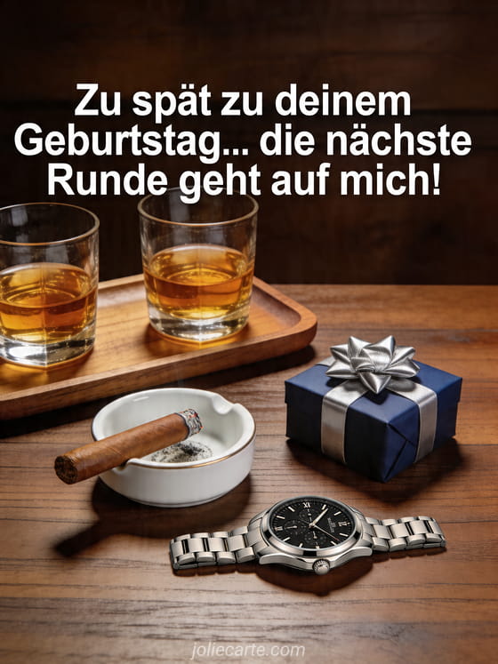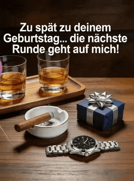 Zu spät zu deinem Geburtstag... die nächste Runde geht auf mich! ein stilvoller nachträglicher geburtstagsgruß