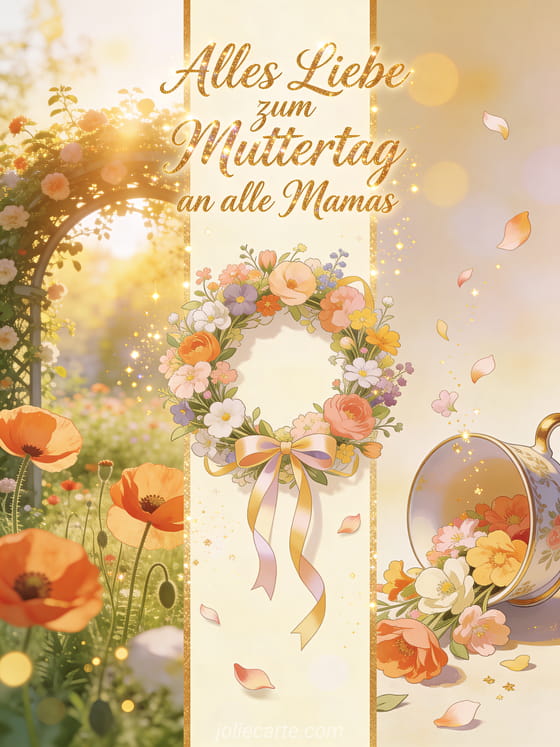 Teile diese festliche Muttertagsbotschaft für alle Mamas und verbreite Freude. Entdecke auch Gedicht für Mama zum Muttertag, süße Worte Muttertag und liebe Mama Muttertag.