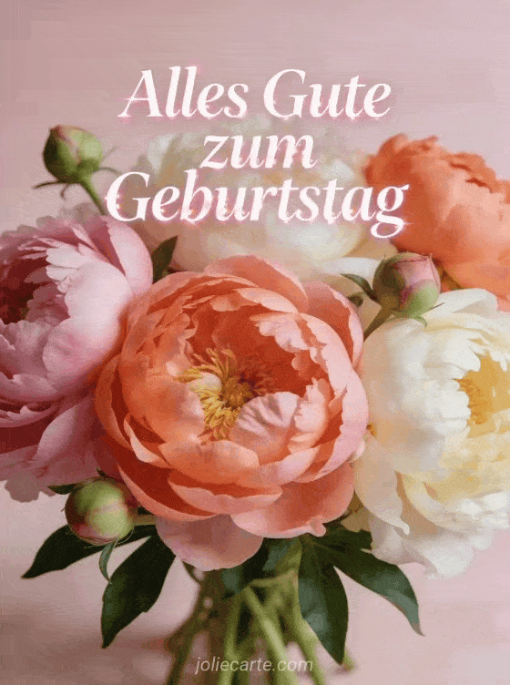 Kostenlose Geburtstagskarte mit Pfingstrosen für Frauen