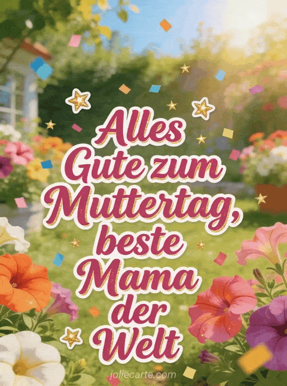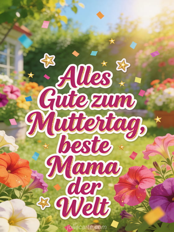 Überraschen Sie die beste Mama der Welt mit dieser wunderschönen Pinterest-Muttertagskarte mit blühenden Petunien. Entdecken Sie auch eine Muttertagskarte oder ein Muttertag gif.