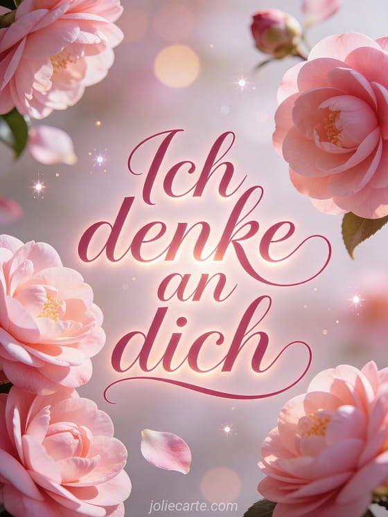 Teile diese zarte Karte mit weichen rosa Kamelien für jemanden, an den du denkst. Entdecke auch eine Karte ich denke an dich wenn ich einschlafe oder eine Karte ich denke sehr stark an dich mein Schatz.